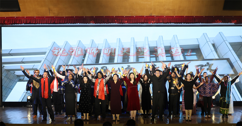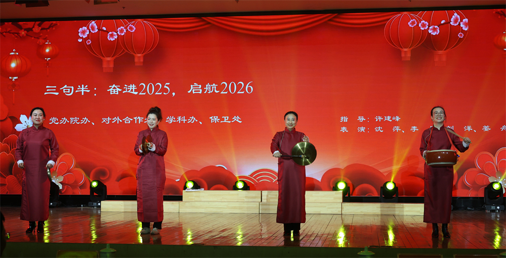 活动中,党办、校办、党委统战部以及党委组织部、党委宣传部合唱《迎风飘扬的旗》激昂澎湃,凝聚奋进力量;团委与招就处的音诗画《与你共赴的青春山海》勾勒出教职工潜心育人的动人图景;保卫处乐器合奏《钢铁洪流》《mojito》精彩纷呈。纪检监察党支部的诗朗诵《金沙荣光 薪火相传》深情回望初心,致敬荣光;后勤管理处舞蹈《红高粱模特队》动感十足,点燃欢乐氛围;工会、财务处、人事处的合唱《亲爱的你呀》温馨动人;学生工作处的《青花舞・国风秀》尽显古典韵味;离退休工作处的八段锦表演传递养生智慧。教务处、信息处的诗朗诵《数智赋能 融合创新——献给未来的教育》、科技处与社科处的歌曲联唱《研途放歌 如愿前行》以及诙谐生动的三句半《奋进2025,启航2026》、机关青年理论学习班青春昂扬的音诗舞《以青春之名 赴金沙之约》、刚柔相济的《和式太极・古琴演奏》,资产处、对外合作处、基建处的诗朗诵《擘画“十五五” 奋进新征程》等节目陆续上演,全方位展现了机关教职工的多才多艺与奋进姿态。最后一曲《明天会更好》将活动气氛推向高潮,寄托对未来发展的美好期许。
